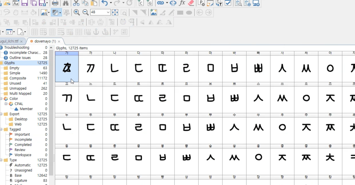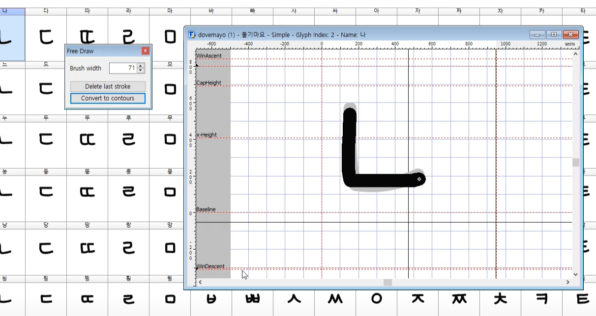 글씨를 글립으로 만들어 폰트화 하는데요 !