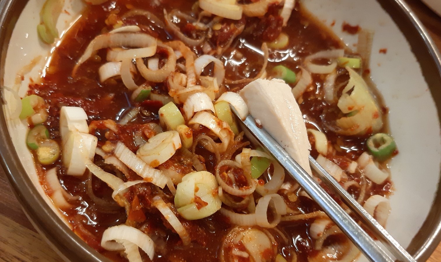 이렇게 닭고기 살을 분리해서 살코기만 젓가락으로
